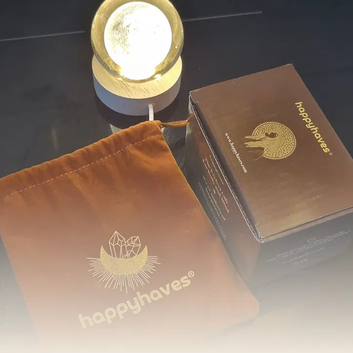 1.Unbox your HappyHaves Calming Cosmic light and place the wooden base where you want it.